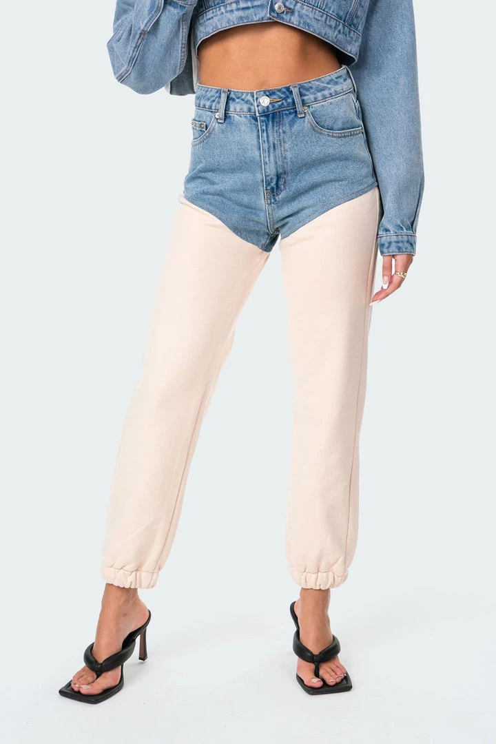 Switch up the jogger trend with this jean jogger combo. These joggers are made from a lightweight fabric with denim detailing, combining both style and comfort for a modern twist.