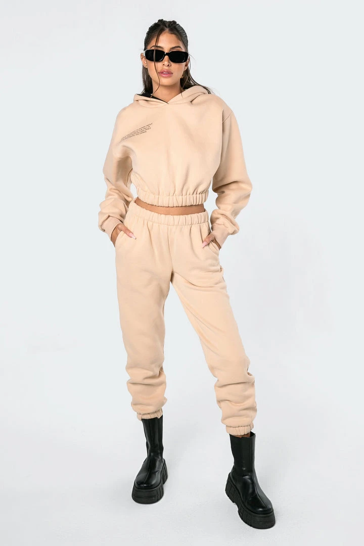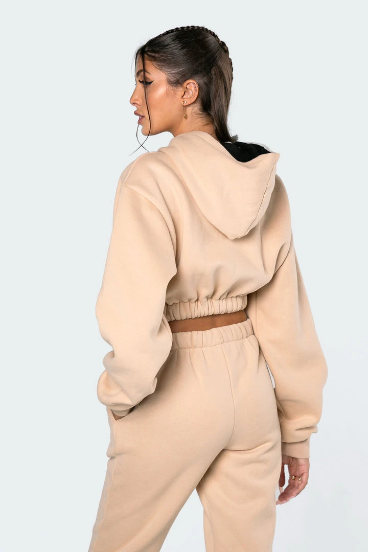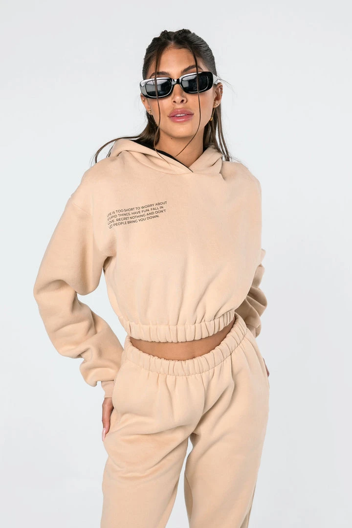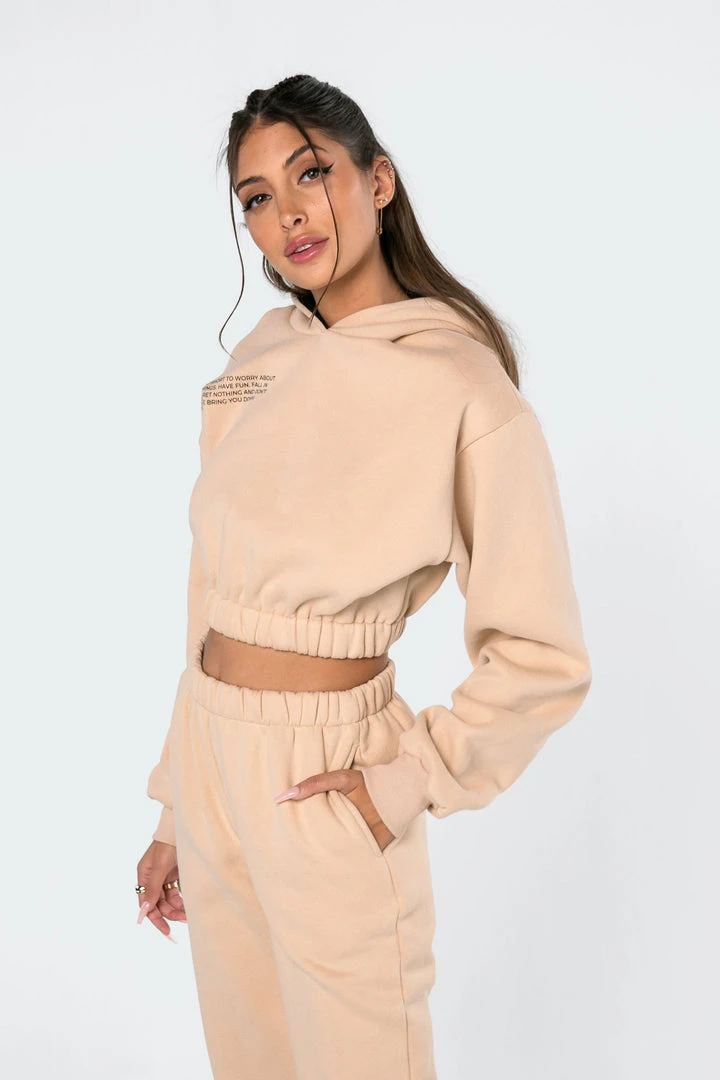 Live it up in this elasticated cropped hoodie. Constructed from a thick warm fabric, with slogan print and contrast black lining, you’ll be at the top of your style game this season.