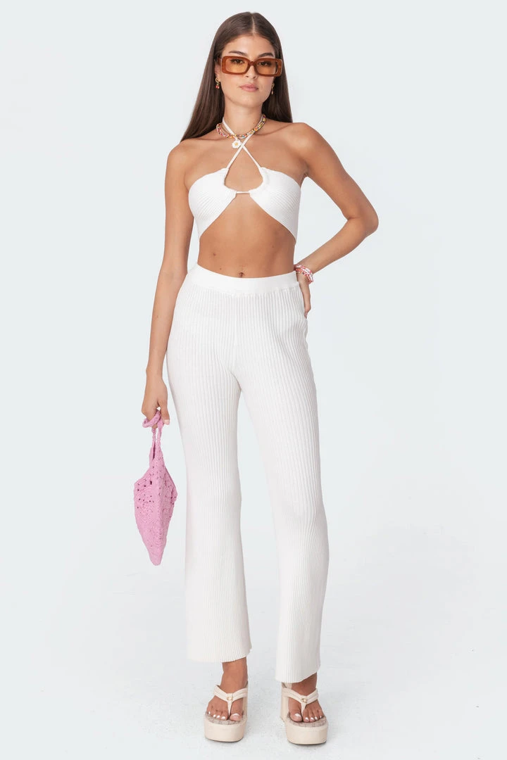 These super comfy, knitted flared pants are made from a soft, ribbed fabric that hugs your body in all the right places. These pants can be worn separately or as a set.