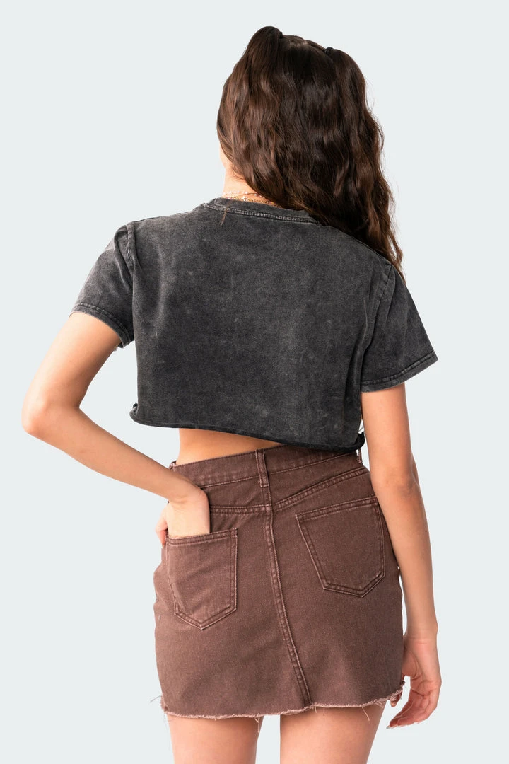 This smokin’ cropped t-shirt is made from a lightweight, vintage wash fabric, with graphic flames printed on its front.