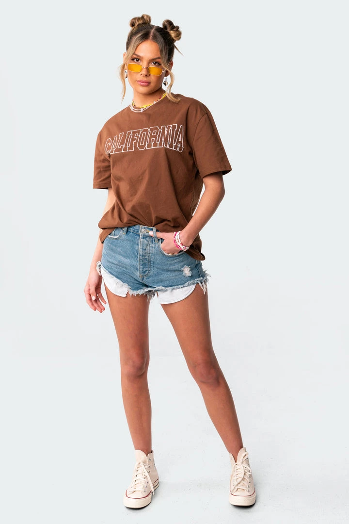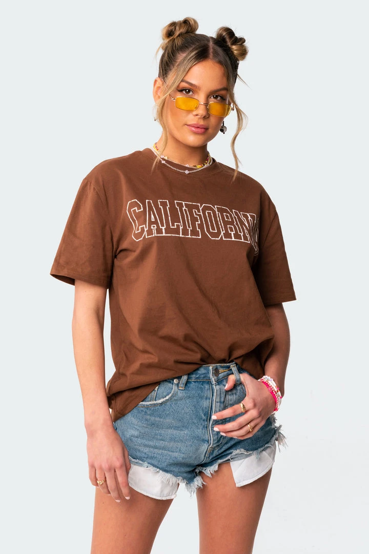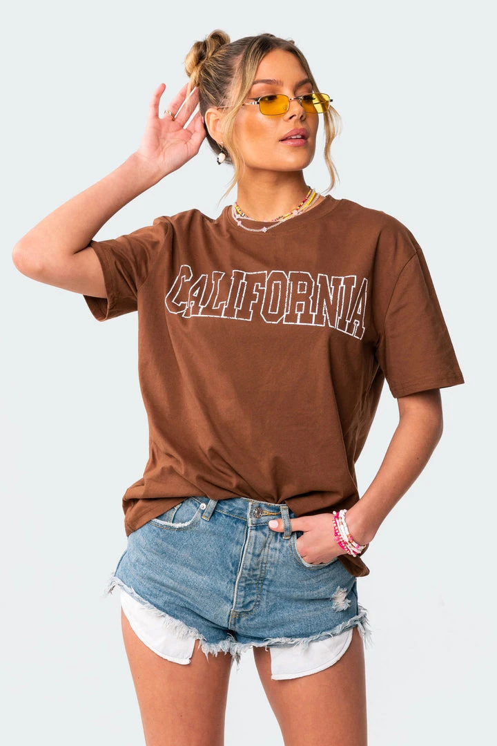This oversized T-shirt is made from lightweight, soft cotton fabric, with a cute California printed slogan on its front.