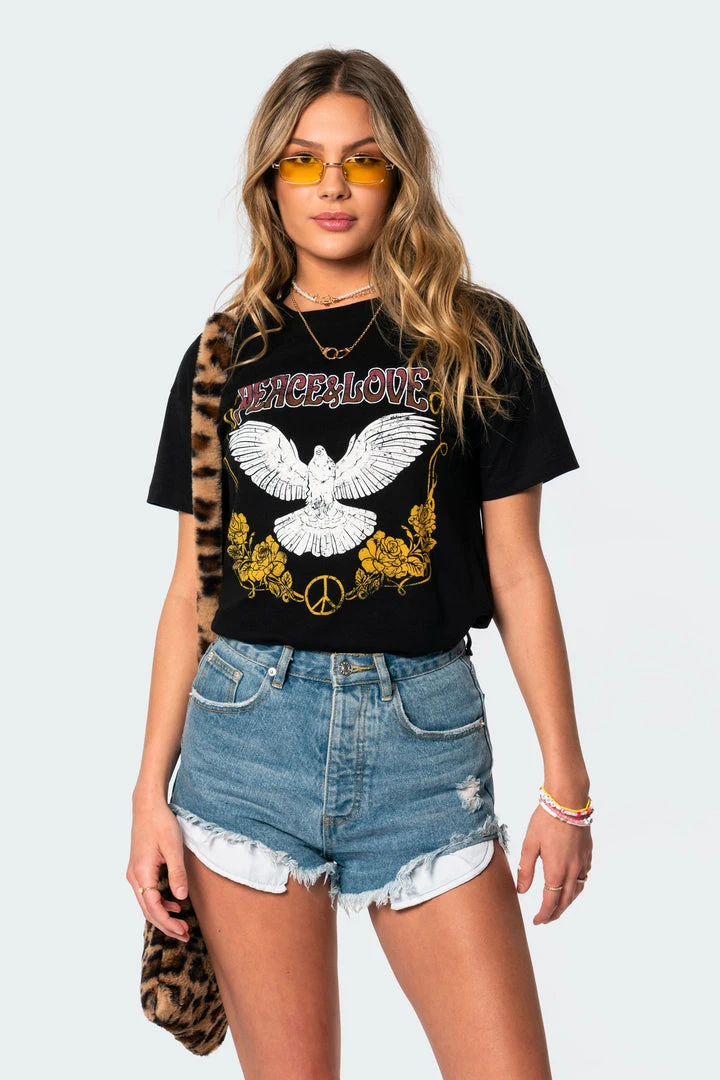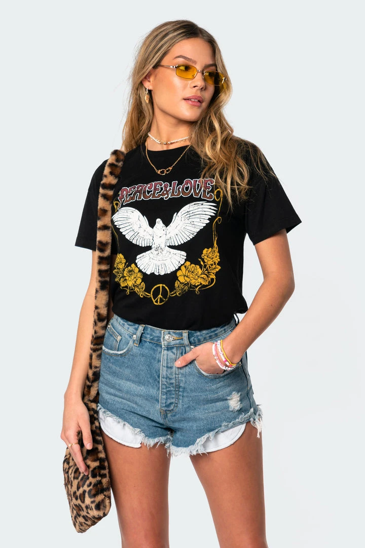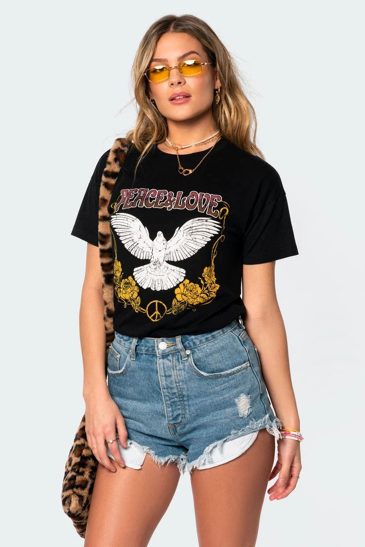 Spread the love with this classic graphic t-shirt. This top is made from a lightweight fabric, with a cute printed dove graphic on its front, giving off the perfect vintage band t-shirt vibe!