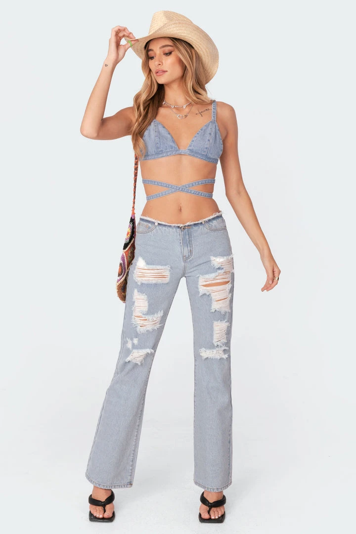 - Denim bralette top