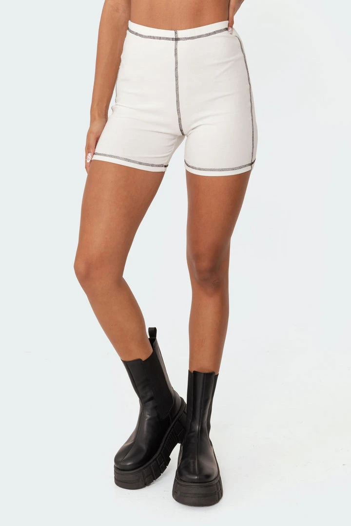 These biker shorts are made from a stretch opaque knitted fabric and have the coolest contrast stitching throughout.